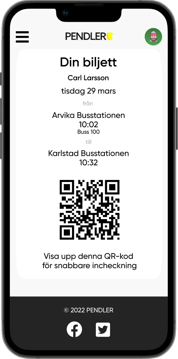 Och så här ser det ut när man betalat och fått sin biljett direkt efteråt. Den största lärdomen från arbetet, i alla fall för egen del, var faktiskt hur man skapar knappar i Figma som har olika ”lägen”. Alltså att en knapp ser ut på ett visst sätt utan att man tryckt på den och på ett annat sätt när man väl klickat på den. Jag hade inte skapat knappar på det sättet förut i Figma. Det krävdes i alla fall att man hade tungan rätt i mun mer än vad jag förväntat mig på förhand. Klicka på följande länk för att testa prototypen. För att starta prototypen trycker du på ”Present”-knappen på Figma-sidan.